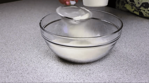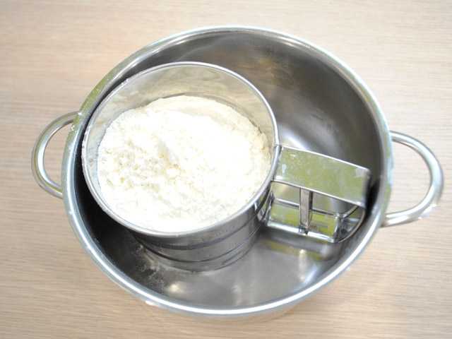 1. Муку просеять через сито в миску, в которой будем замешивать тесто. Просеивать следует обязательно, для того, чтобы частицы муки насытились воздухом.