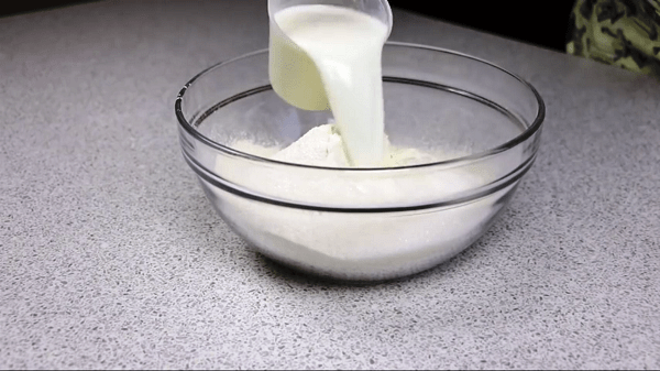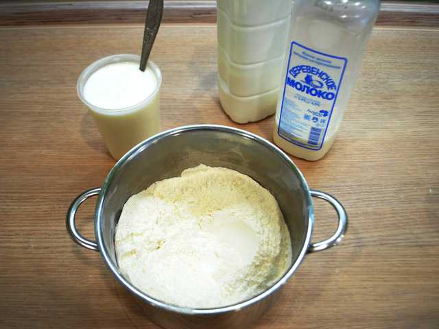 - Сначала подготавливают дрожжи. Молоко немного подогревают, делают сладким. В него высыпают дрожжи, размешивают.