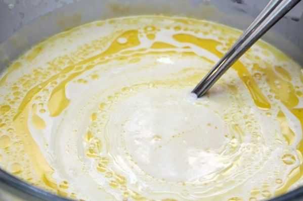 4. Добавьте растительное масло, чтобы блинчики не прилипали к сковороде. Консистенция готового теста должна напоминать жидкую сметану, то есть быть не слишком густой, но и не слишком жидкой.