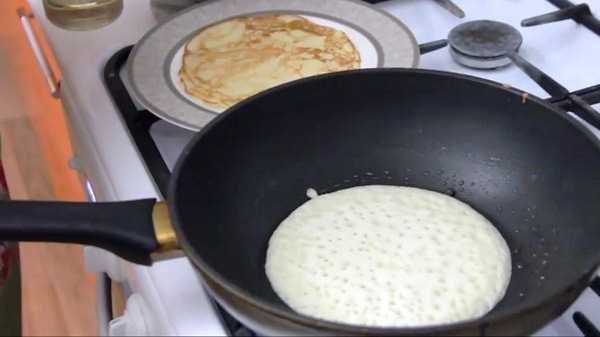 6. Согреть сковородку и выпекать на ней блины с двух сторон. Они должны получится румяными, красивыми и с большим количеством дырочек.
