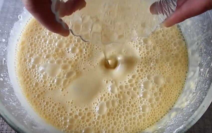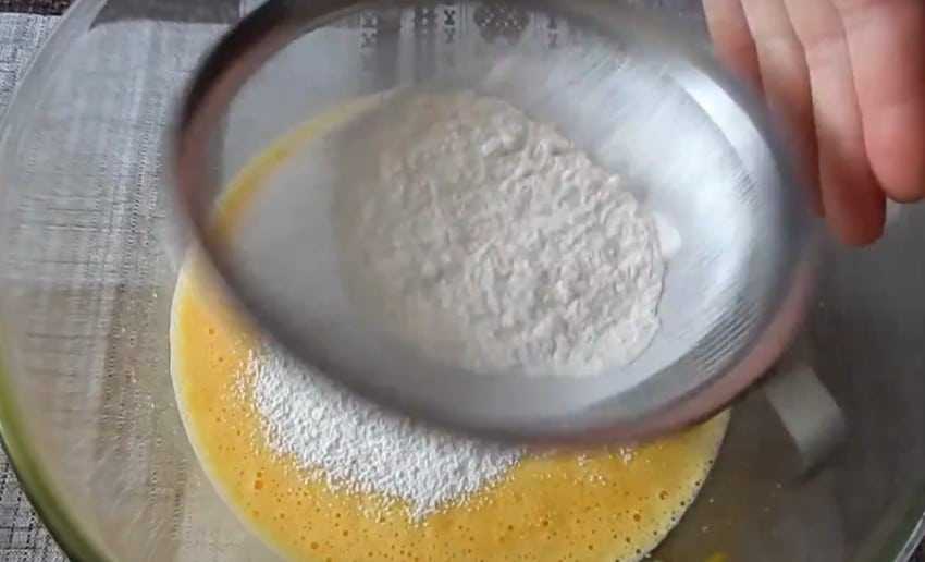- Добиваемся ажурности. Для этого яичные белки взбивайте отдельно, а потом аккуратно вводите их в тесто. После добавления белков миксером уже не пользуйтесь, иначе эффекта не будет.