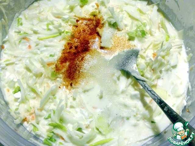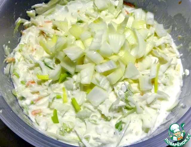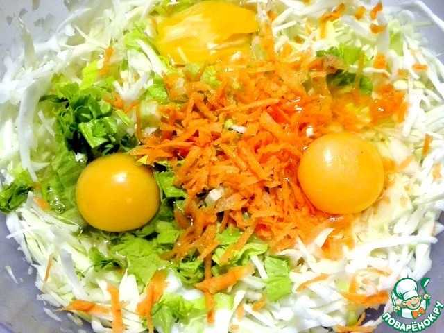 Блины делаю с разными овощами. Но впервые подобные блины с капустой я ела у своей подруги. Она украинка, живёт в соседнем городе. Когда — то я тоже жила там и мы работали вместе. Подруга очень любит готовить овощные блюда и особенно с капустой. Для этих блинов она нарезала капусту соломкой. Морковь тёрла на мелкой тёрке и добавляла 1/3 часть от количества капусты. Также нарезала зелень, укроп, петрушку. Лук в блины использовала зелёный. Этот рецепт у меня записан в блокноте. По молодости я любила собирать рецепты от своих подруг, родственников, знакомых и записывала. Тогда кулинарные книги были в дефиците.