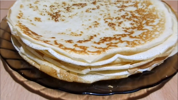 - Готовые блины можно смазать сливочным маслом и сложить в стопку, тогда они будут мягкими и нежными. Вообще по этому рецепту получается универсальный продукт, который можно есть с любыми начинками, подавать вместо хлеба к супу или мясу, смазывать джемами, медом и т.д.