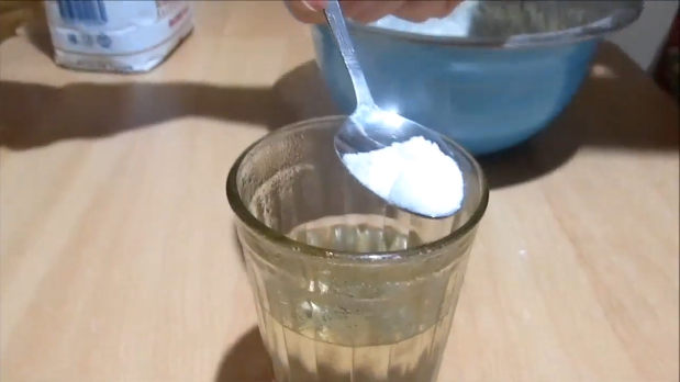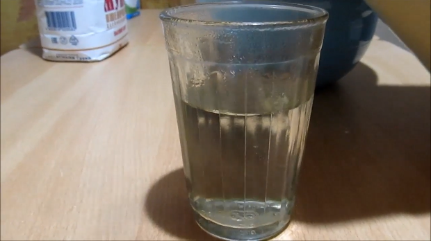 - Налить крутой кипяток в стакан и растворить в нем соду.