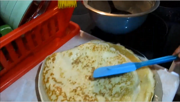 Блины можно испечь заранее. Можно даже заморозить, а в нужный момент достать из морозильной камеры и собрать торт.