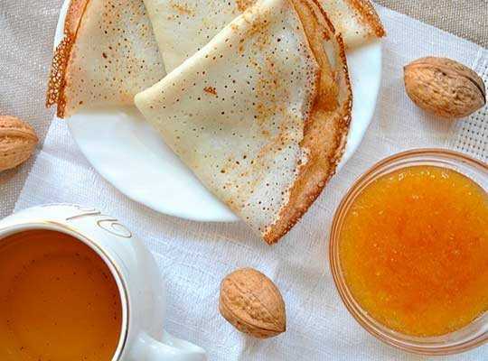- Подавать рисовые блины хорошо и к завтраку, и в качестве десерта в любое время суток. С ними хорошо сочетаются различные джемы, шоколадные и арахисовые пасты, мед.