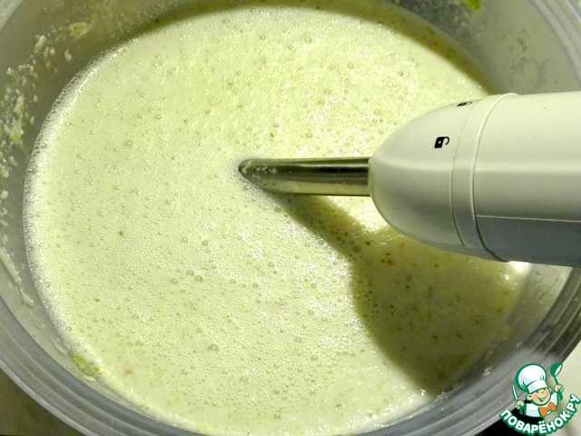 Перед выпечкой тесто хорошо взбила ещё раз блендером.