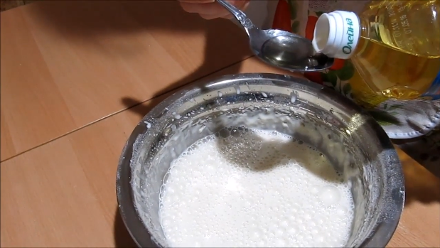 - Добавить в тесто растительное масло. Оно не только придаст нужную эластичность блинам, но и убережет их от прилипания к сковороде во время жарки.