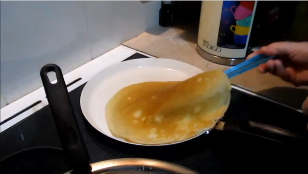 Когда вы увидите, что края уже подрумянились, и весь блинчик изменил цвет —