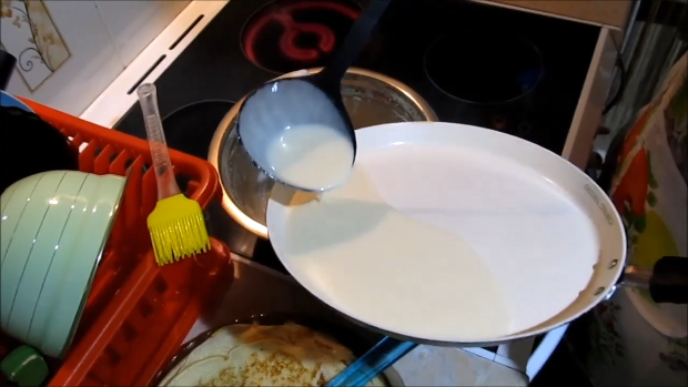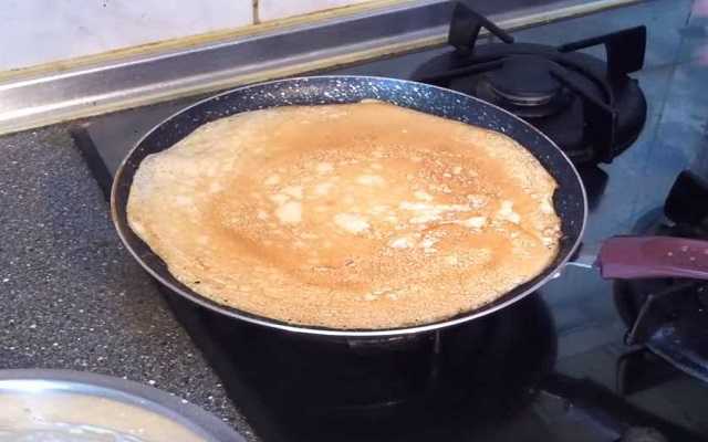 - Если вливать на сковороду небольшую порцию сусла, блинчики будут тонкими. Примерно половина половника.