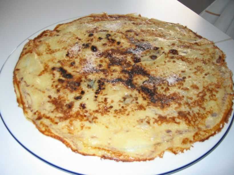Сладкие блины делают из пшеничной муки (crêpe bretonne). Подают их сложенными в треугольник со сладкой начинкой.