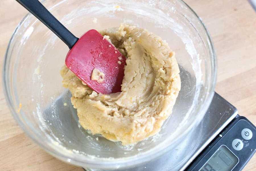 - Замесите тесто, скатайте его в шар и заверните в пищевую пленку. Подержите его в холодильнике не менее 40-60 минут (можно дольше).