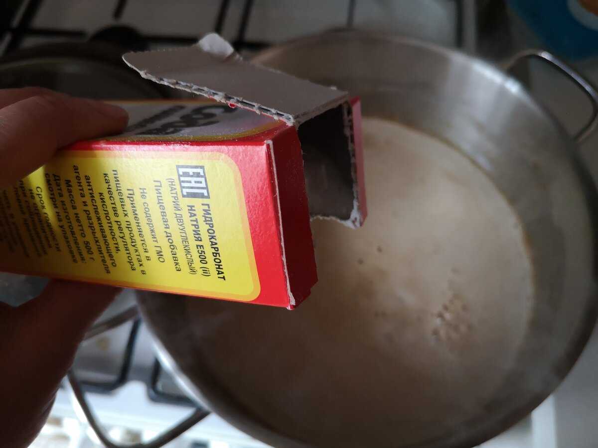 Если алюминиевую кастрюлю испортила длительная варка варенья, то ее нужно прокипятить в растворе пищевой соды (на большую кастрюлю уходит от трети до половины пачки продукта) в течение часа. После такой подготовки нагар можно будет аккуратно и без проблем снять губкой. -