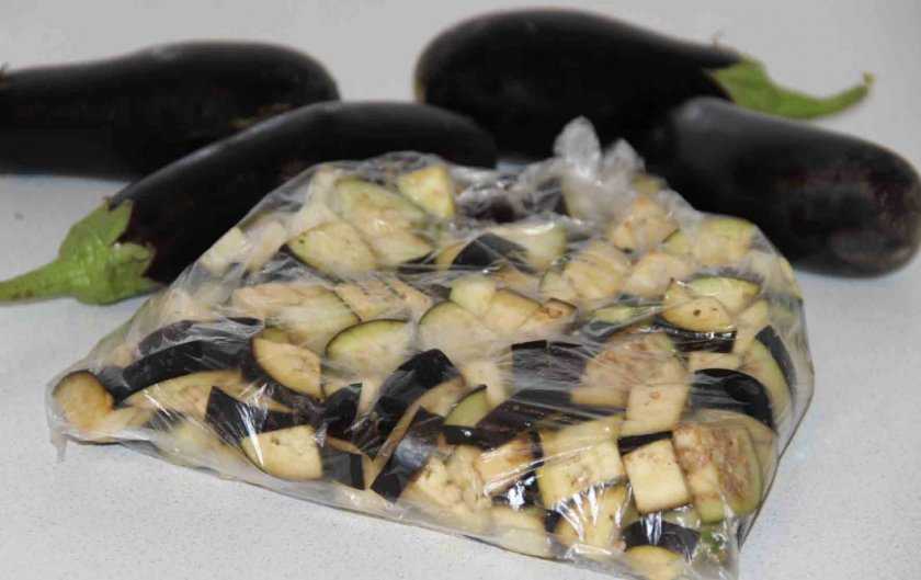 Заморозка – менее популярный из всех способов, но тоже действенный. Нарежьте плоды вдоль тонкими пластинами. Выложите на блюдо и уберите в морозилку на четыре часа. Затем отожмите баклажанные пластинки – горечь уйдет вместе с лишней влагой.