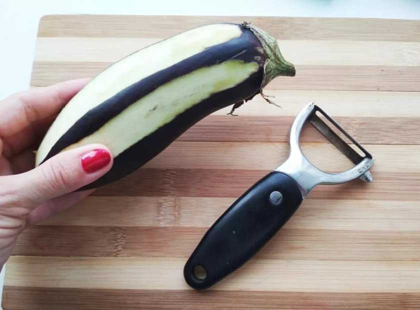 Как упоминалось выше, кожура у баклажанов является основным «накопителем» горечи. Поэтому если кулинарный рецепт допускает использование исключительно мякоти, плод нужно просто очистить от кожуры и далее готовить желаемое блюдо.