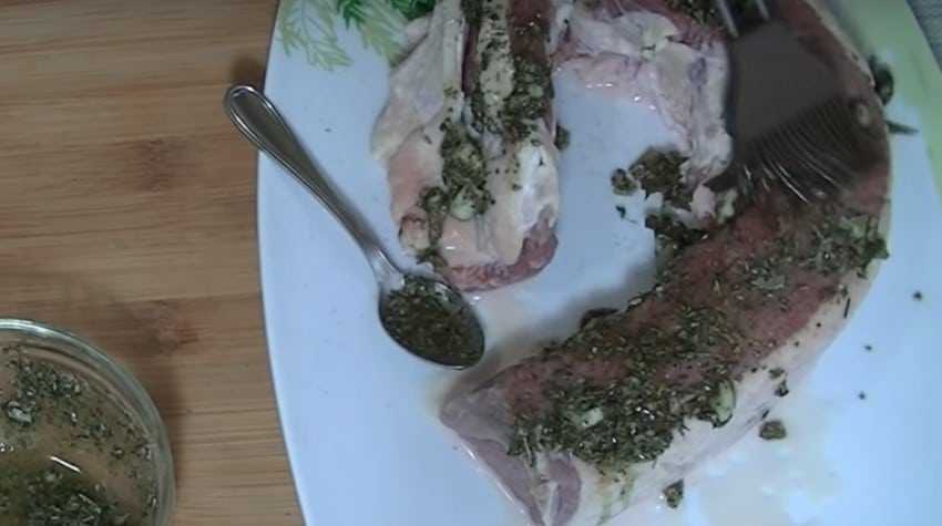 5. Полученной смесью специй и масла обмажьте мясо со всех сторон.