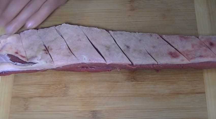 1. Кусок мяса неглубоко надрежьте по периметру. Можете для красоты сделать крестообразные разрезы: они отлично будут смотреться на уже готовом блюде.
