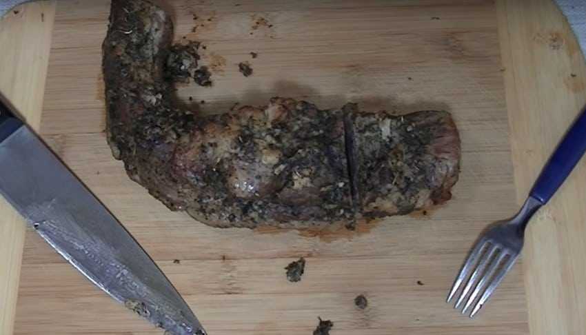 Нет термометра? Можно проткнуть мясо специальной иглой или тонким ножом, и смотреть на цвет вытекающего сока: сок прозрачный – блюдо готово, а мутный и красноватый цвет означает, что надо запекать еще.