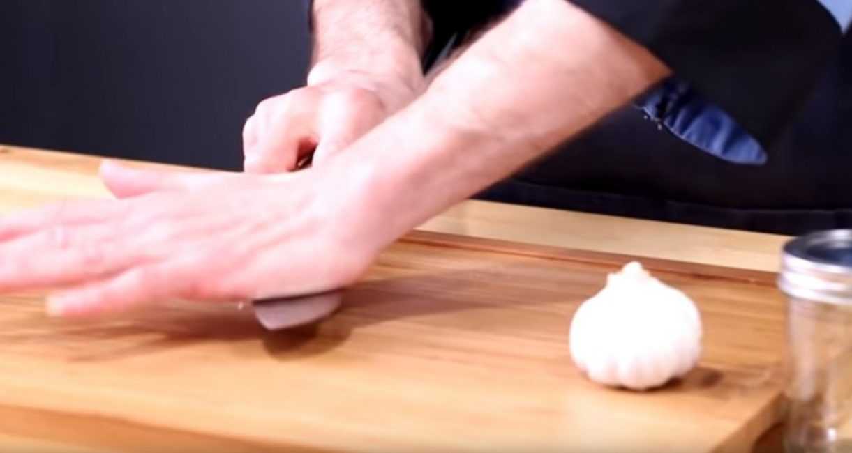 Все, что нужно сделать – уложить зубчик на разделочную доску и, держа нож плашмя, надавить на него. После такой несложной манипуляции зубчики будут очищены.
