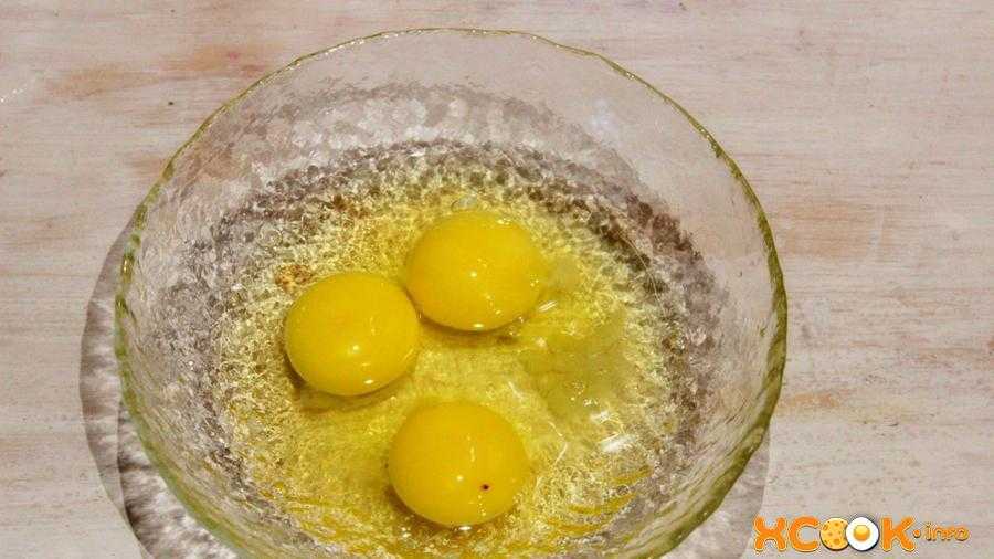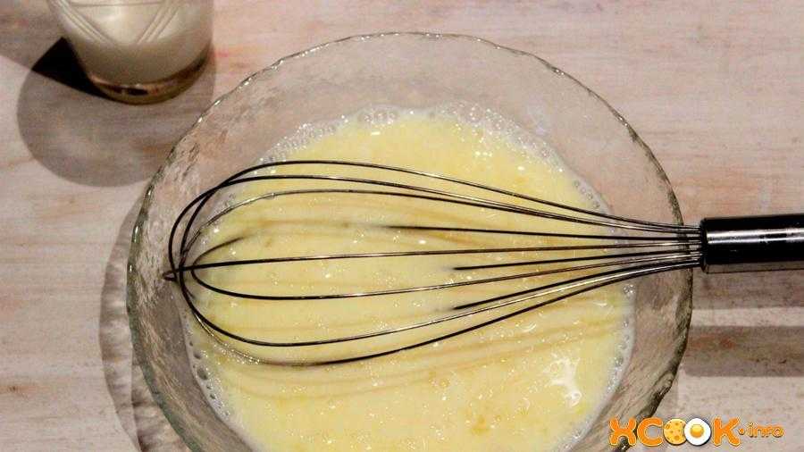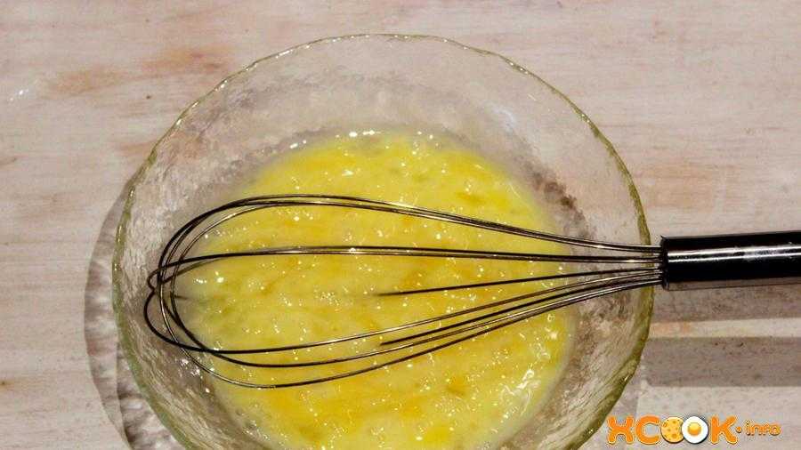 - Яичную массу тщательно взбить, чтобы она стала однородной.