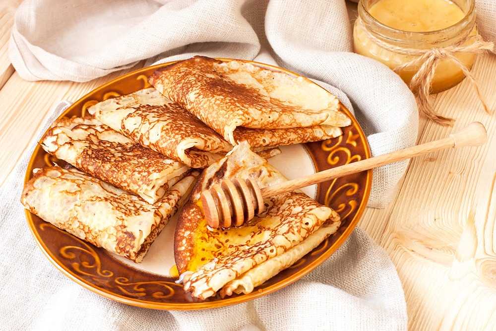 Корни рецепта приготовления этого блюда уходят к древним славянам. На Руси готовили разные виды блинов, используя в качестве жидкой основы воду, молоко, смесь воды и молока, молочную сыворотку. Готовили дрожжевые «толстые», и бездрожжевые, тонкие блины.