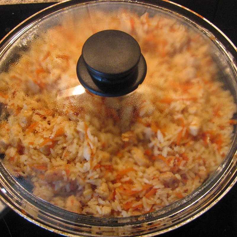 - несоблюдение технологии приготовления. Сегодня существуют самые разнообразные рецепты плова. Во многих из них в процессе приготовления компоненты блюда не должны перемешиваться. Рис вносится уже в самом конце, из-за чего не всегда удается точно соблюсти все требования (температуру в емкости, время варения, количество воды и т. д.). Это и приводит к тому, что зерна либо остаются очень сухими, либо же слипаются;
