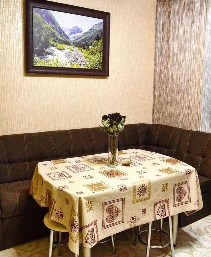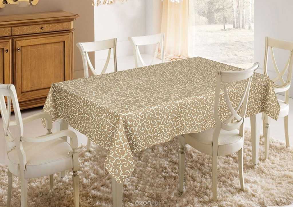 На кухнях чаще всего стол накрывают клеенчатыми скатертями. Они недорогие, их можно просто очистить влажной тряпочкой в случае загрязнения, на них не остается пятен