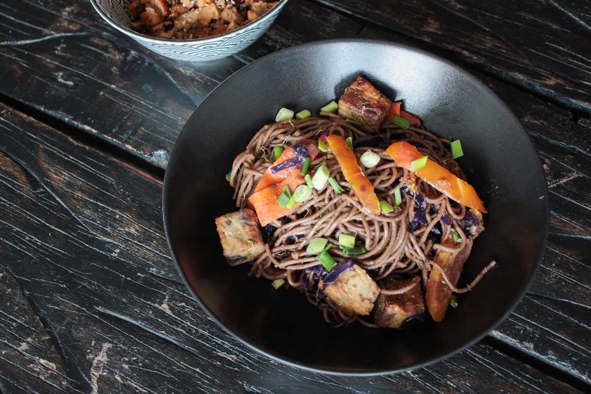 Чтобы приготовить азиатский маринад, смешайте соевый соус, кунжутное масло, мёд, чеснок и имбирь. Подержите в нём тофу десять минут и затем обжарьте на большом огне с овощами. Подавайте с готовым рисом или рисовой лапшой.