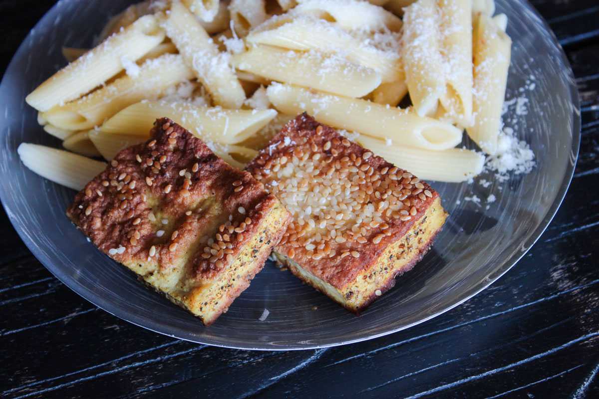 Будет ещё вкуснее, если перед обжаркой вы обваляете сухие ломтики тофу в семенах кунжута или любимых специях.