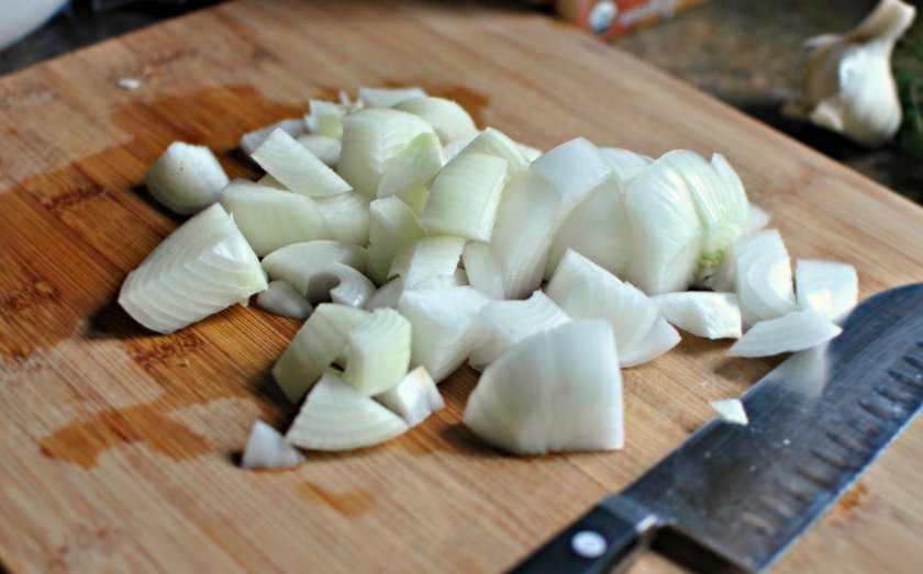 Важно! Чем мельче вы нарежете лук, тем быстрее уйдет из него горечь