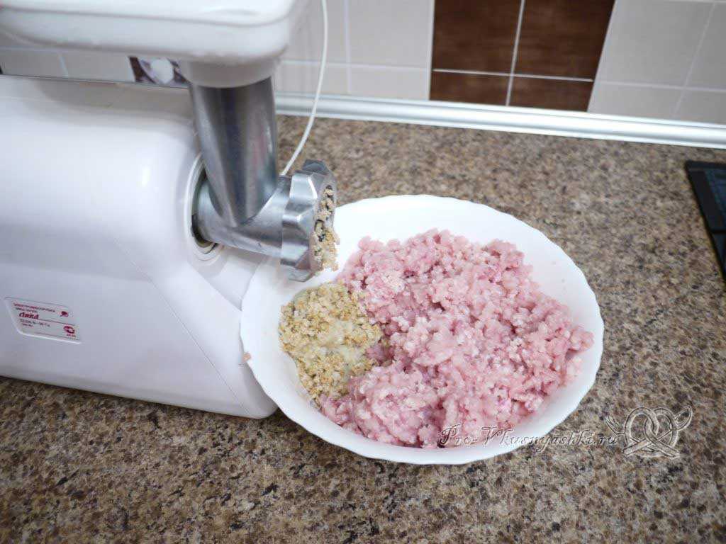 Итак, достаем мясорубку и перемалываем в ней мясо, лук и хлеб (это самый простой способ).