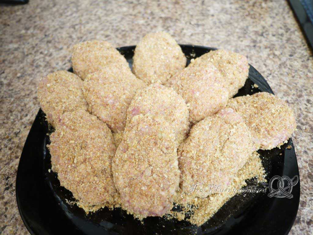 После панировки котлеты считаются полуфабрикатом, и если Вы хотите приготовить только одну-две порции, остальные можно смело убрать в морозильную камеру, до следующего раза.