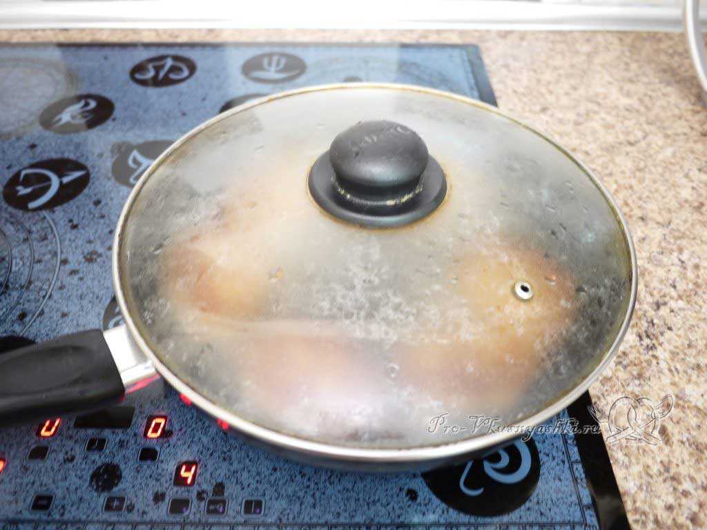 Накрываем сковороду крышкой, убавляем огонь (4 из 9) и продолжаем жарить 7-10 мин до готовности (котлетки должны немного увеличиться в размерах и приподняться).