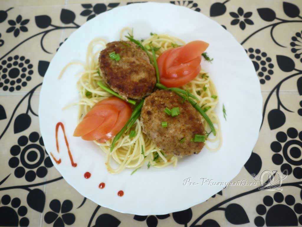 Готовые котлеты выкладываем на тарелку, добавляем гарнир и любимый соус.