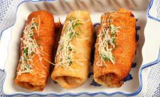 Завернутые блинчики с начинкой из грибов, сыра и курицы Ингредиенты: готовые блины сыр — 200 гр. грибы — 400 гр. луковица — 1 шт. вареная курица — 400...