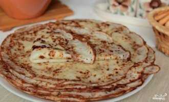 Тонкие блинчики без яиц Время: 50 минут. Количество порций: 8 персон. Калорийность блюда: 400 ккал в 100 г. Предназначение: к чаю. Кухня: русская. Сложность приготовления: легкая.