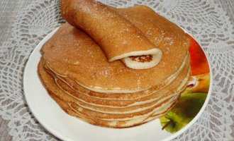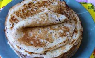 Блины в бутылке на воде Время приготовления: 40 минут. Количество порций: 8 персон. Калорийность блюда: 159 ккал. Предназначение: на завтрак. Кухня: русская. Сложность приготовления: легкая.