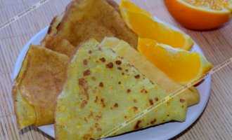 Рецепт «Французские апельсиновые блинчики»: Замешиваем тесто для блинов из яиц, муки, молока, воды, сахара, щепотки соли и ванильной эссенции. Ликер и масло сливочное оставляем на потом.
