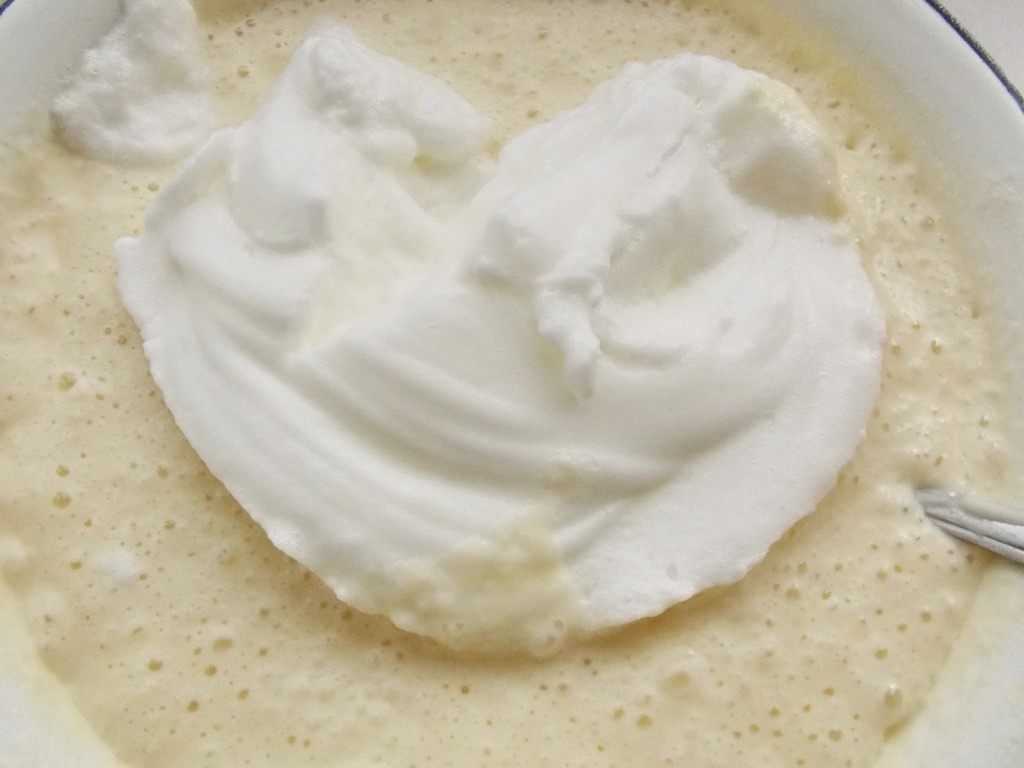 - За это время нужно взбить белки в устойчивую пену. Их нужно аккуратно вмешать в общую массу и оставить еще на пятнадцать минут.