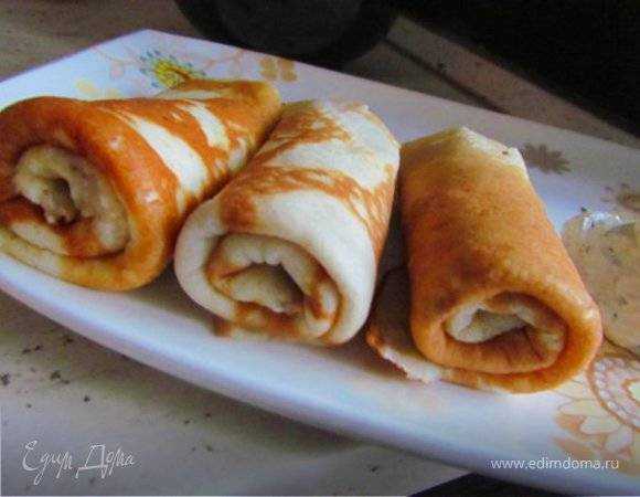 Начинка для этих блинов состоит из маринованного лука, варёной свёклы и шпрот – продуктов, которые всегда можно купить. По вкусу фаршированные рыбой блинчики напоминают «селёдку под шубой». Но они получаются более пикантными из-за маринованного лука, поэтому могут служить отличной закуской к крепким алкогольным напиткам.
