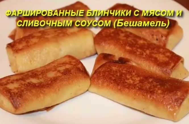 Далее предложены несколько вариантов угощений. Например, блинные мешочки с мясом. Из блинов на молоке получается удивительно вкусное блюдо!