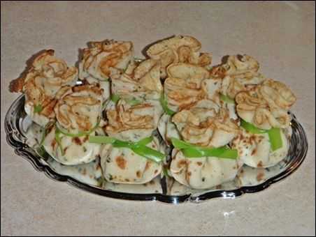 – В качестве завязок можно использовать так же копченый сыр косичкой, разбив его на волокна, а для мешочков со сладкой начинкой подойдет апельсиновая корочка и, даже, бублик.