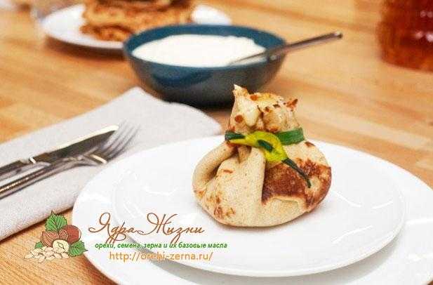 Блины-мешочки с грибами рецепт с курицей и сыром
