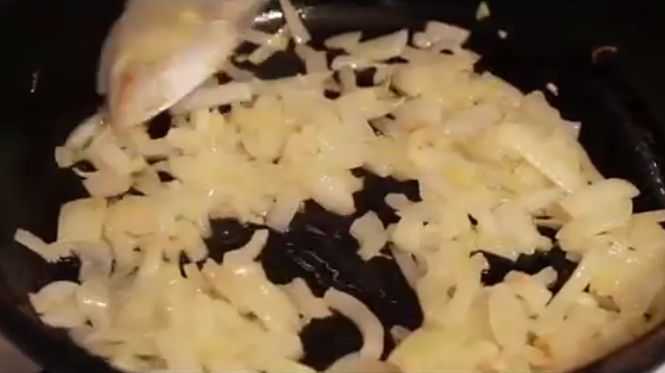 1. После обжаривания под крышкой грибы будут плавать в жидкости. Ее придется отцедить. Потом на этом ароматном бульоне можно сварить суп или сделать рагу, еще в нем тушат овощи, однако для данного рецепта он не потребуется. Грибным долькам, предназначенным для начинки, положено быть сухими.