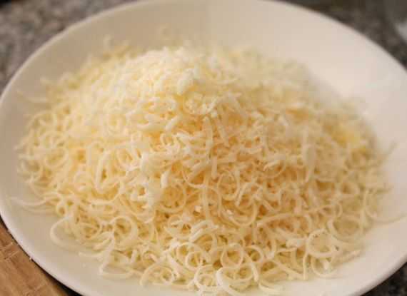 Перед тем, как измельчать сыр, смочите терку прохладной водой, это облегчит скольжение и позволит вам избежать прилипания. Натрите сыр в свободную тарелку.