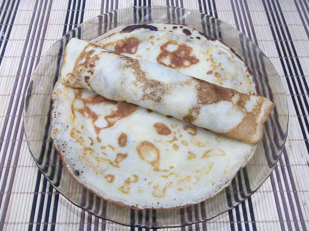 Чтобы приготовить фаршированные блины, сначала нужно испечь блины. Предлагаем самый простой рецепт теста для блинов.