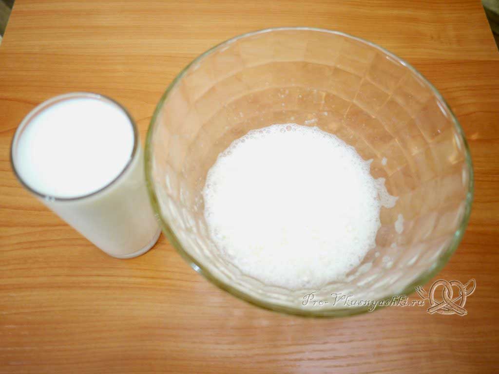 Добавляем в миску теплое молоко (1 ст).