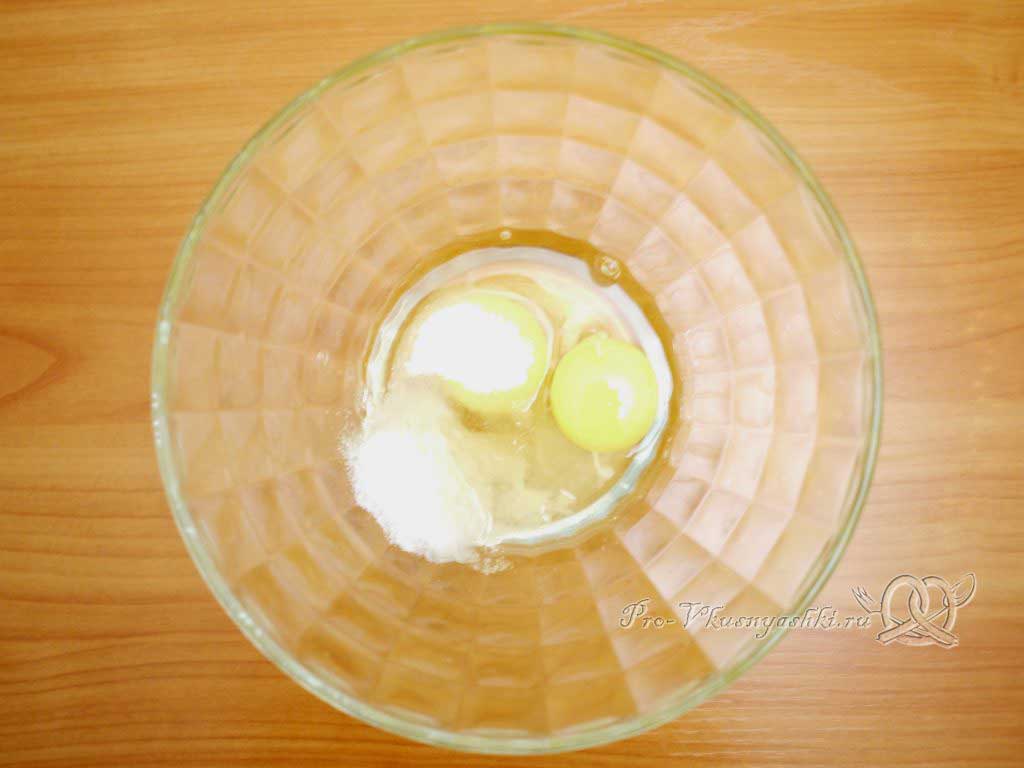 1. Разбейте в миску яйца, смешайте с ними соль и сахар.