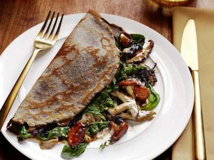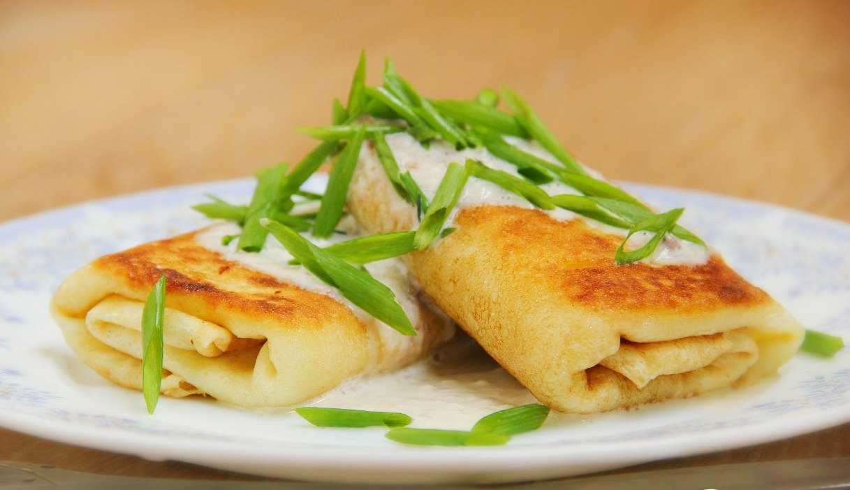 Такие блины получаются очень вкусными. Их можно дополнять всевозможными начинками, например, начинкой из лука, картофельного пюре и грибов
