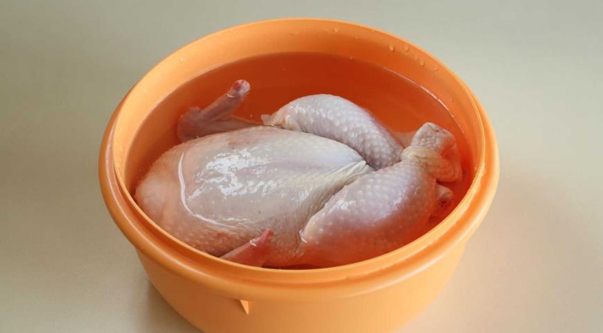 Если курицу нужно разморозить быстро, но пара часов всё же имеется в запасе, воспользуемся следующим способом: